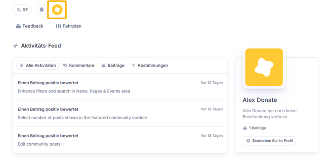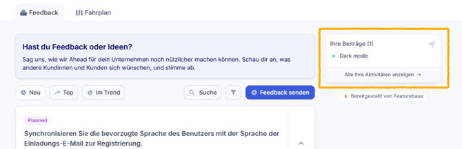 Das Feedback-Portal ist ein gemeinsamer Raum für ahead Kund:innen. Veröffentlichte Beiträge können von anderen gesehen und kommentiert werden.