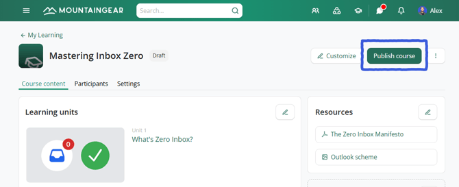 You can make as many edits as needed while a course is in draft. When the course is ready to go live, click Publish course.
