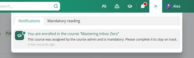 If participants are enrolled, they’ll receive an in-app and mobile notification when the course is published. (No email notification is sent.)