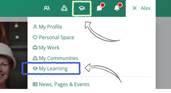 From your profile menu: Go to Profile menu › My Learning. (desktop and mobile)