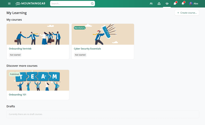 Drafts - Course editors can access their drafts here. (Only for users with 'Create Courses' permission)